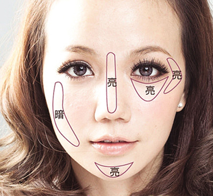 由外向内,由周围向中间的顺序。用稍暗一些的粉底做周围的粉底,然后空出高光部分打上较亮一些的粉底。这个手法是使用减法的方法来塑造立体的轮廓,掌握起来比前一种技术含量更高一些,对于化妆新手来说会比较难一些。
