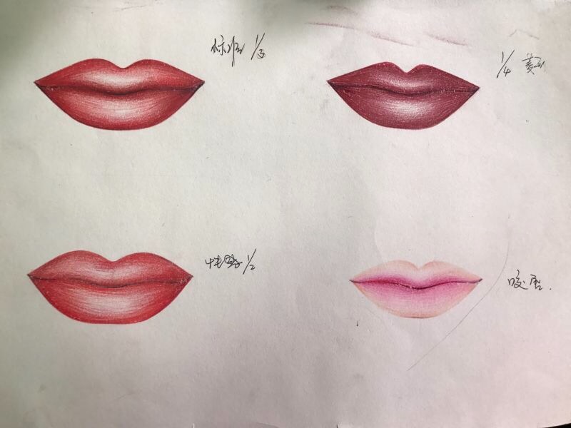 1、熟练掌握四种唇形(咬唇、标准唇、菱形唇、性感唇)的绘画方法