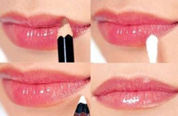 沿下唇轮廓的延长线,呈线状涂上遮瑕膏,用指腹涂匀,遮盖住原先的嘴角轮廓,然后将靠近嘴角上方2?3毫米处作为基点,用唇线笔点上点标记一下,再开始描画上下唇线。