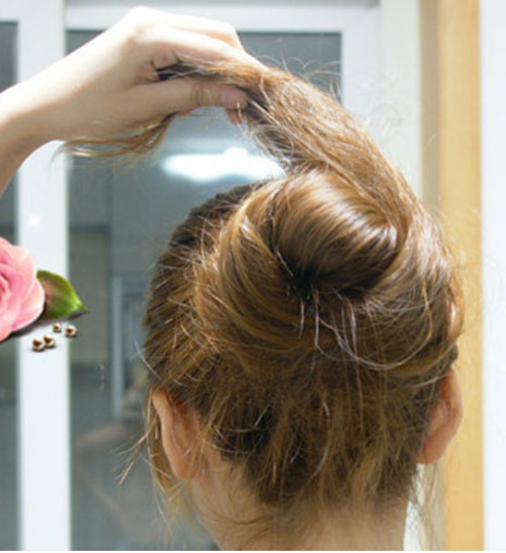 1、剩下的另一半马尾再按照第四步的方法,美丽又个性的花苞头就出来了。