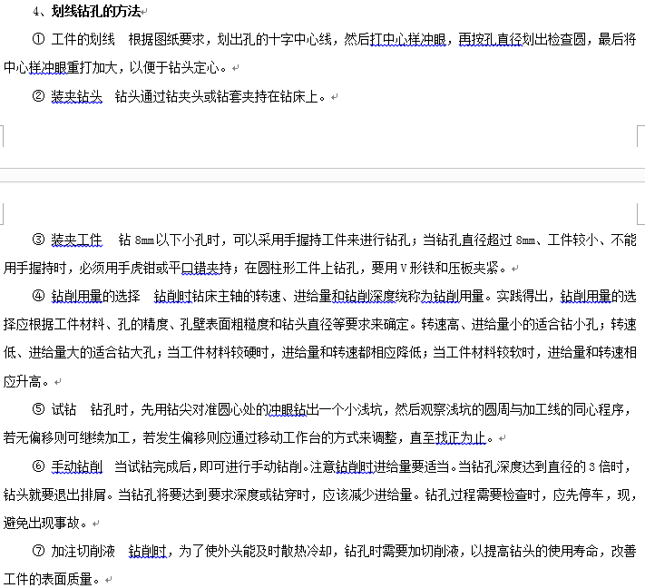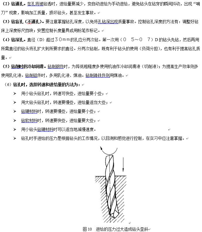 用钻头在实体材料上加工孔的方法叫钻孔。