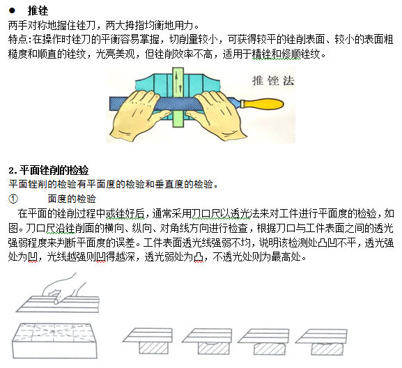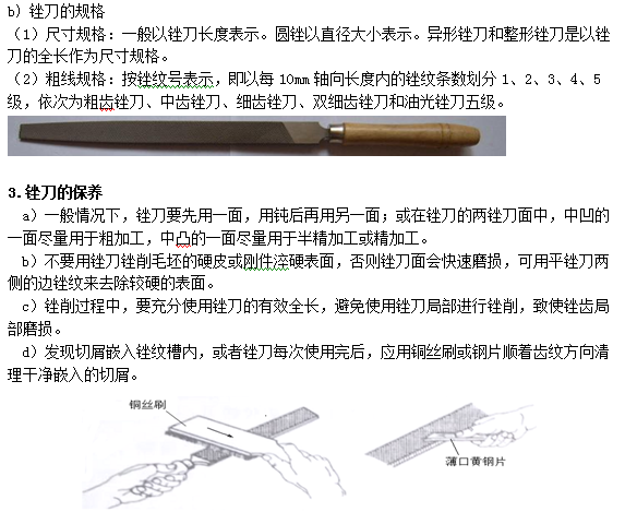 锉削是用锉刀对工件表面进行切削加工,使工件达到所要求的尺寸、形状和表面粗糙度的操作。