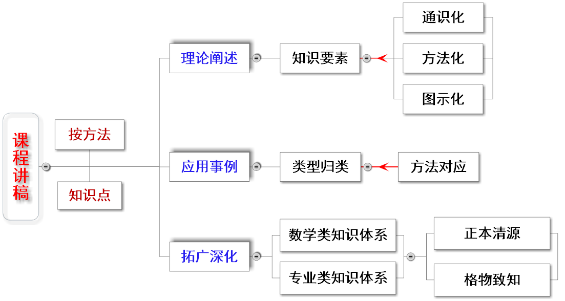 大学的学习应该注重理解与掌握知识体系的内在思想与方法,注重将知识升华为能力。对于知识体系自身的研究,我们概括为知识的通识化、方法化、思想化, 概述如下。