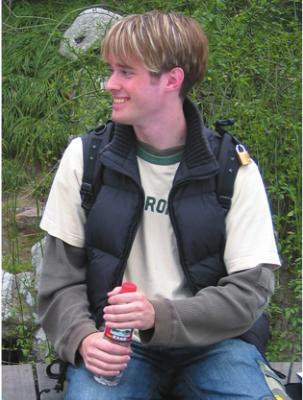 5) Shelley and Michael are sitting on a bench talking, each holding a bottle of water.