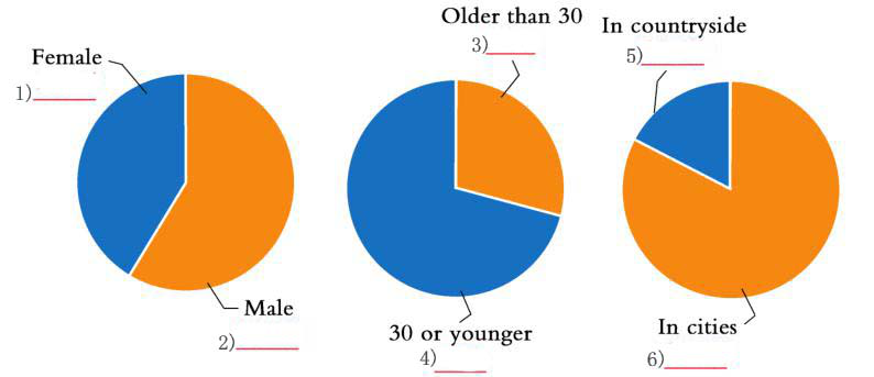 Listen to the following short speech, Who Is Using the Internet in China? While listening, fill in each of the blanks with the corresponding percentage.