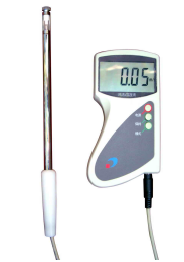 测定室内气流速度一般用热球微风仪,这是一种测量低风速(测量范围:0.05~1m/s)的仪器。现在各种便携式电子(热球)微风仪(如图3-2、图3-4所示)、手持式风向风速仪(如图3-3所示)和智能热风式风速仪都已经诞生,大大方便了测试工作。