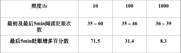 看书疲劳和照度 :不同照度下,看书后眼睛疲劳程度可以通过眨眼次数的变化来说明
