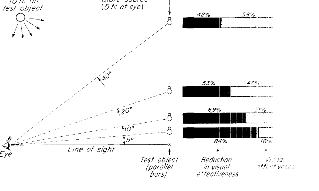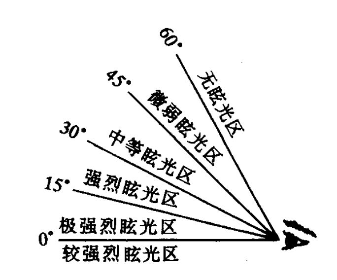 眩光源对视效的影响程度与视线和光源的相对位置有关
