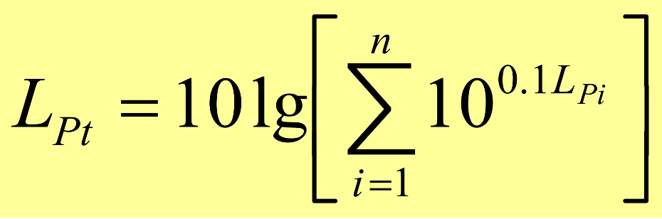 若在某点分别测得几个声源的声压为P1,P2,…,Pn,该点总声压Pt 满足