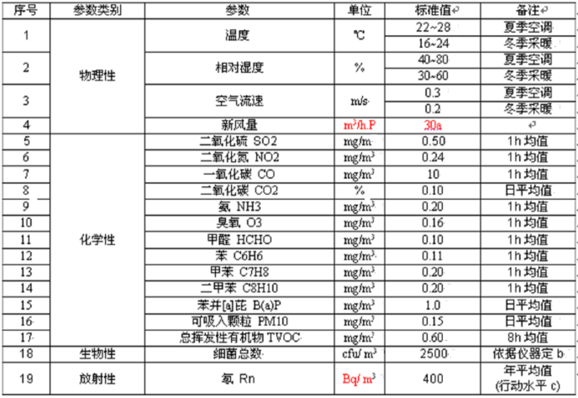 《室内空气质量标准》与2003年7月1日实施的《民用建筑室内环境污染控制规范》、《室内装饰装修材料有害物质限量》等国家强制性标准共同构成了我国室内环境污染控制和评价体系。该标准规定的控制项目包括物理性、化学性、总挥发性、生物性和放射性五大类20个指标。