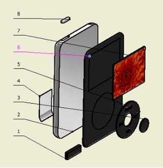 IPOD共由八个零件组成,本任务要求正确约束各个零件并实施装配。