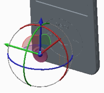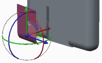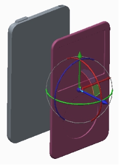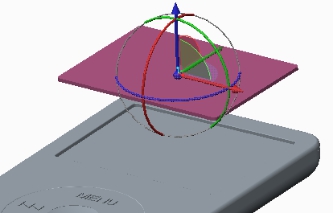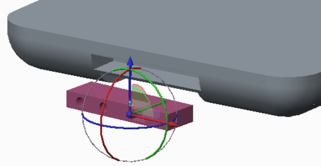 (二)选择需要移动的零件,如屏幕零件,在零件上会出现如图3-1-32所示的调整工具,鼠标放在要移动方向的坐标轴上,按住左键不动即可拖动零件,如图3-1-33所示。