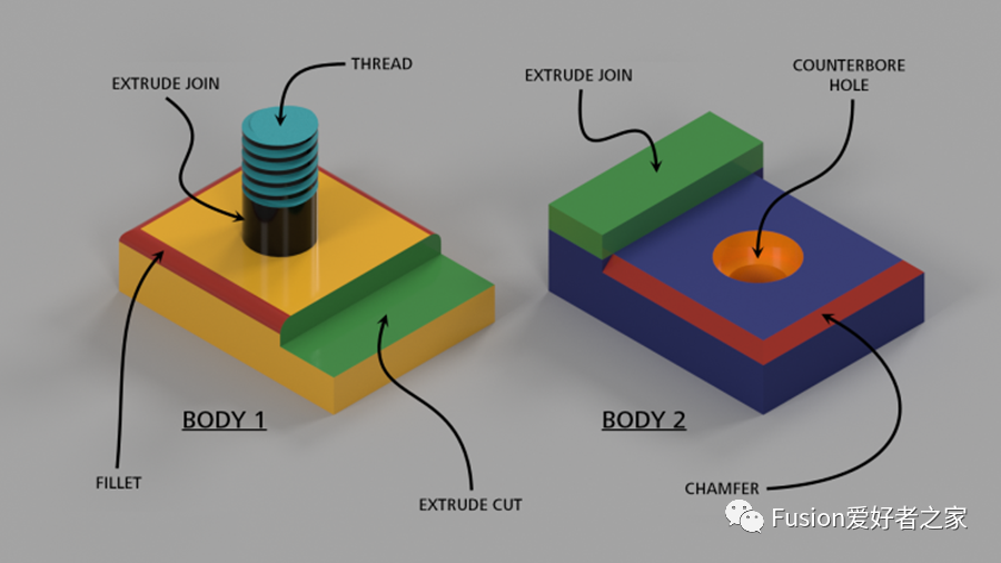 从本质上说,实体构成了你的设计的几何表现,无论是独立的还是由于与其他 实体的关系。然后,零部件允许您定义部件结构,并通过使用联接,可以确定零件和子部件之间的相互作用方式。使用零部件时,需要确保激活了正在使用的零部件,否则可能会得到意外的结果。请记住,Fusion设计文件是其自身的一个零部件,因此您添加的任何其他功能可能最终成为顶级组件的一部分,而不是您认为要添加到的零部件。