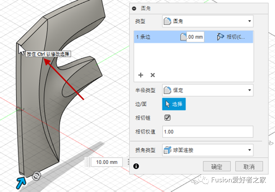 然而,Fusion 360在建模工作空间中确实有一个独特的应用场景。在编辑诸如圆角或倒角之类的现有特征时,您需要按住Ctrl/⌘以添加或删除一些选择。