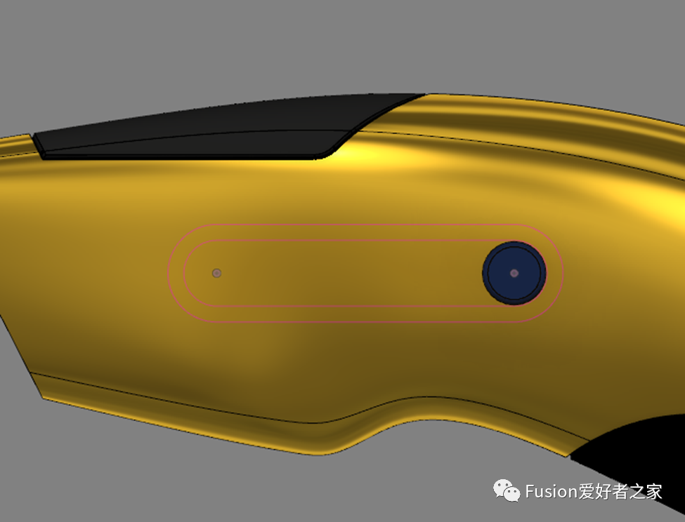 请注意,按钮的位置已更改。该构件的位置(通过投影)可以用于定义插槽草图中的轮廓: