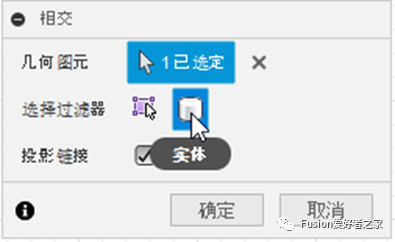 首先在对话框里选择过滤器中选择实体,然后选择需要投影截面的实体作为几何图元后点击确定,选中实体的截面轮廓就投影到当前草图中了,您就可以基于这个投影进行进一步的草图绘制了。在这个相交对话框中还有投影链接选项,假如您期待将来实体的更改可以更新到这个草图中,您在创建的时候需要勾选这个选项,反之则不用勾选它。
