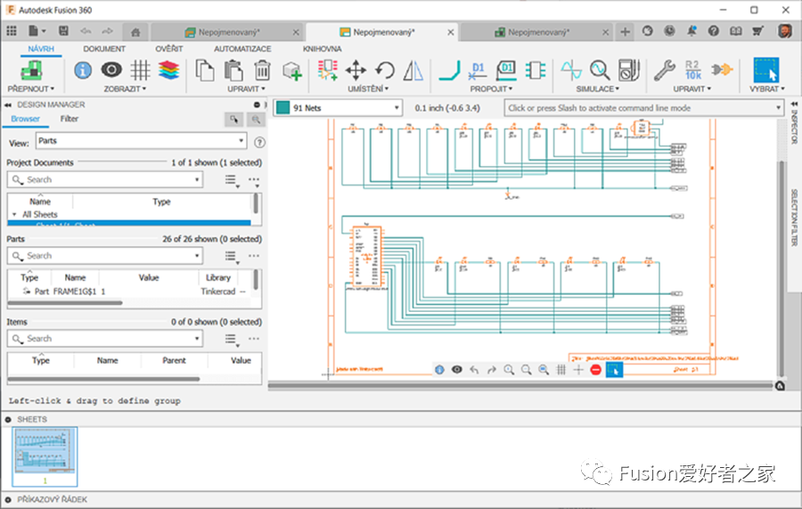 在Fusion 360中显示和可编辑的电子设计原理图:
