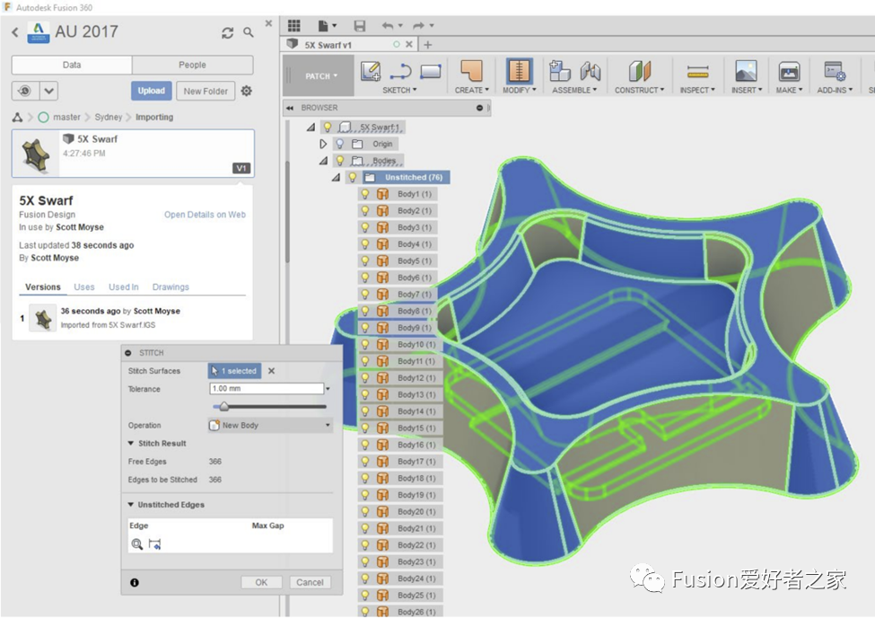 • 17.134 Fusion360技能134:如何缝合和验证实体
