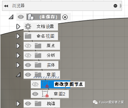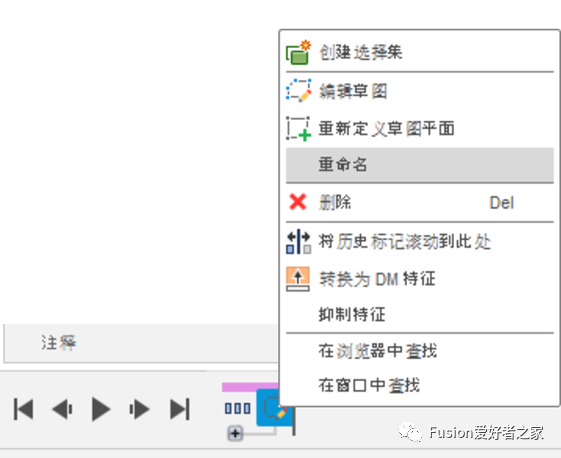 当然也可以在时间轴上草图节点上,通过其右键菜单中的重命名功能来修改草图名称。