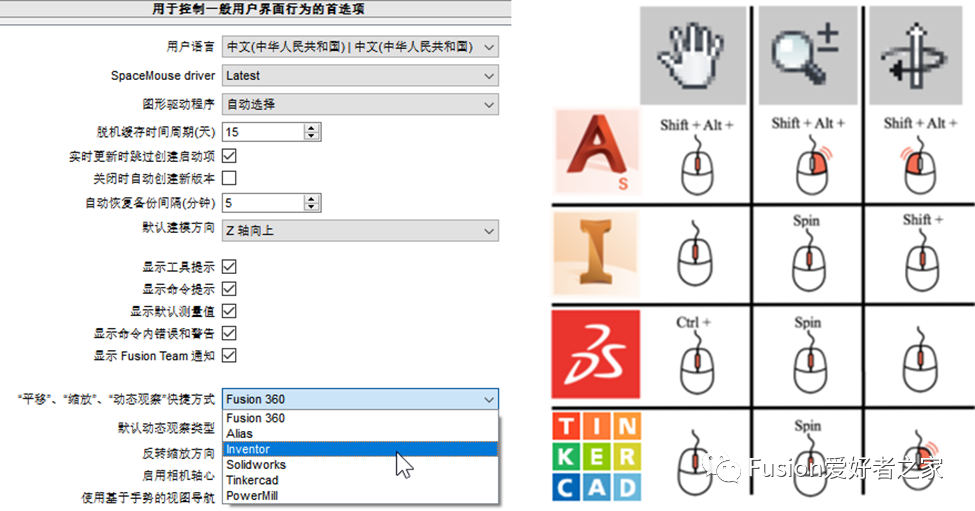 Fusion360技能120:鼠标平移、缩放和动态观察首选项
