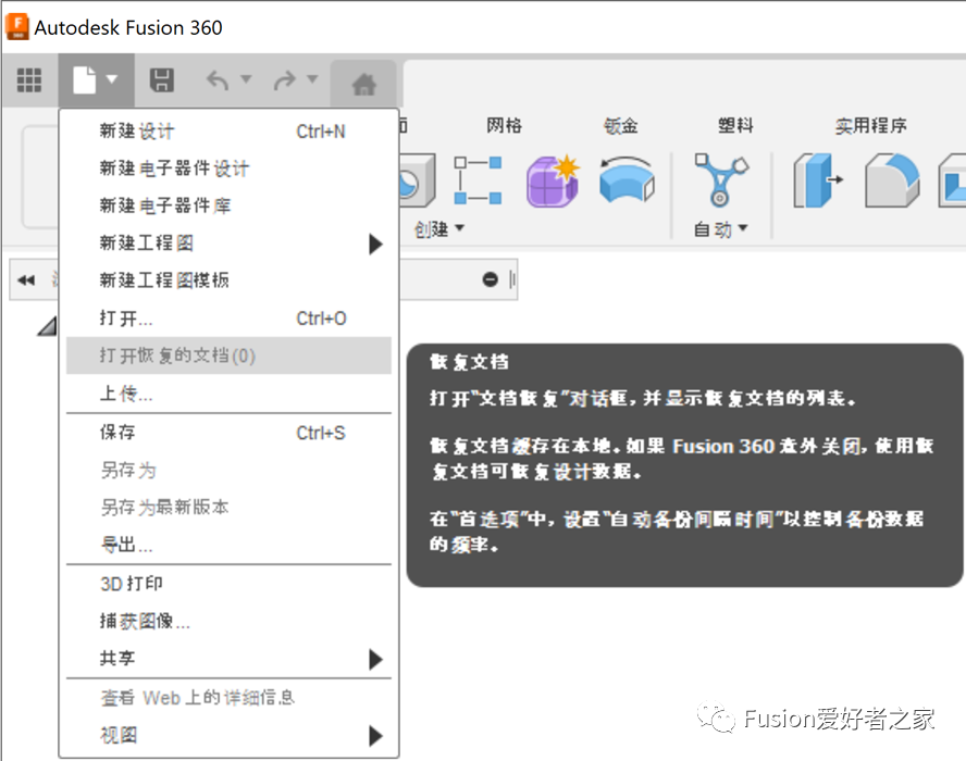 Fusion360技能142:如何查找恢复文件