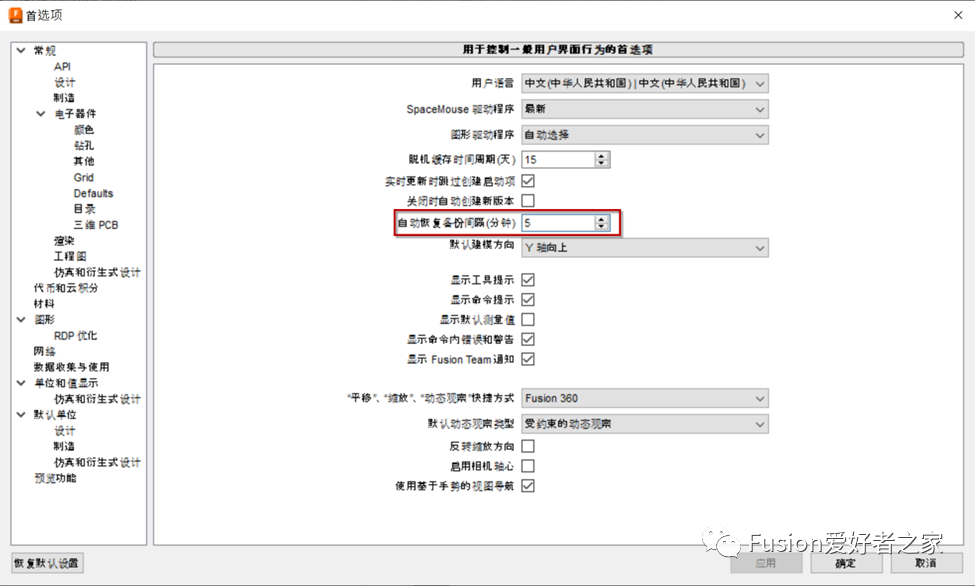 • 17.120 Fusion360技能120:鼠标平移、缩放和动态观察首选项