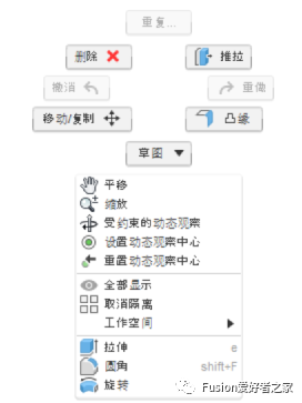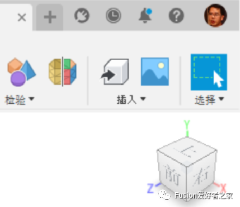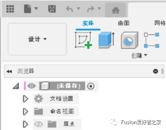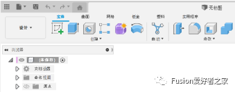 2.应用程序栏是在Fusion 360窗口的最上面一行,包括(从左到右):