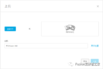 7. 上传前,请务必检查文件位置。上传过程将使用云将其他可接受的CAD格式转换为Fusion 360可用的文件类型。