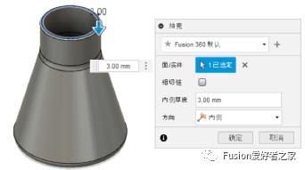 8.选择顶面后,输入3毫米以指示壁的厚度。然后单击“确定”,然后可以动态观察模型。