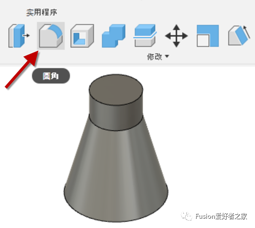 图1. 激活工具栏中的“圆角”工具以使实体的边圆化