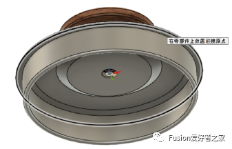 4.由于茶壶的盖和旋钮位置不正确,因此可以使用标准联接。激活后,“联接”命令要求您定义联接原点,该原点定义几何图元,以将两个或多个零部件与Fusion 360联接关联起来。将鼠标悬停在底面上以查看联接原点图标。