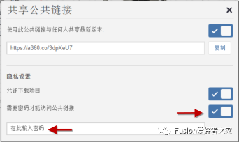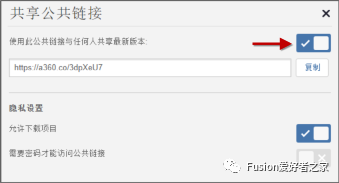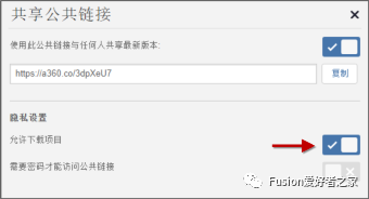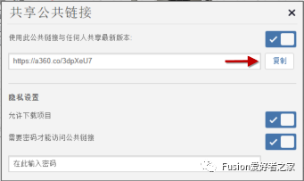 图4. Fusion 360 中的共享公共链接对话框