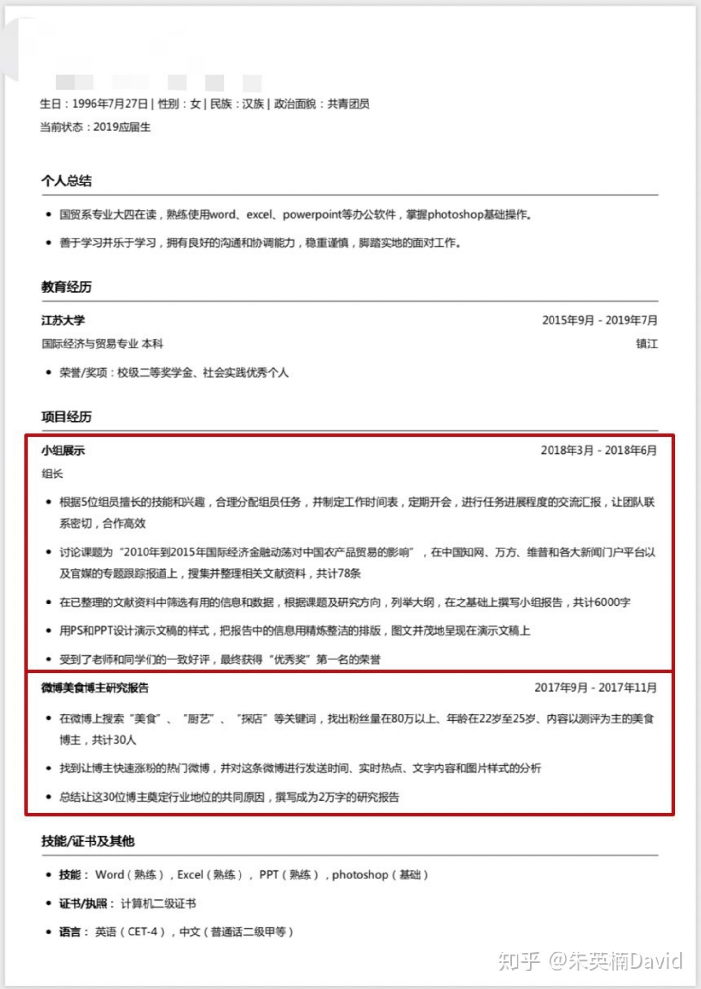 也就是凡是能证明你学习能力、工作能力的经历,都应该呈现出来。