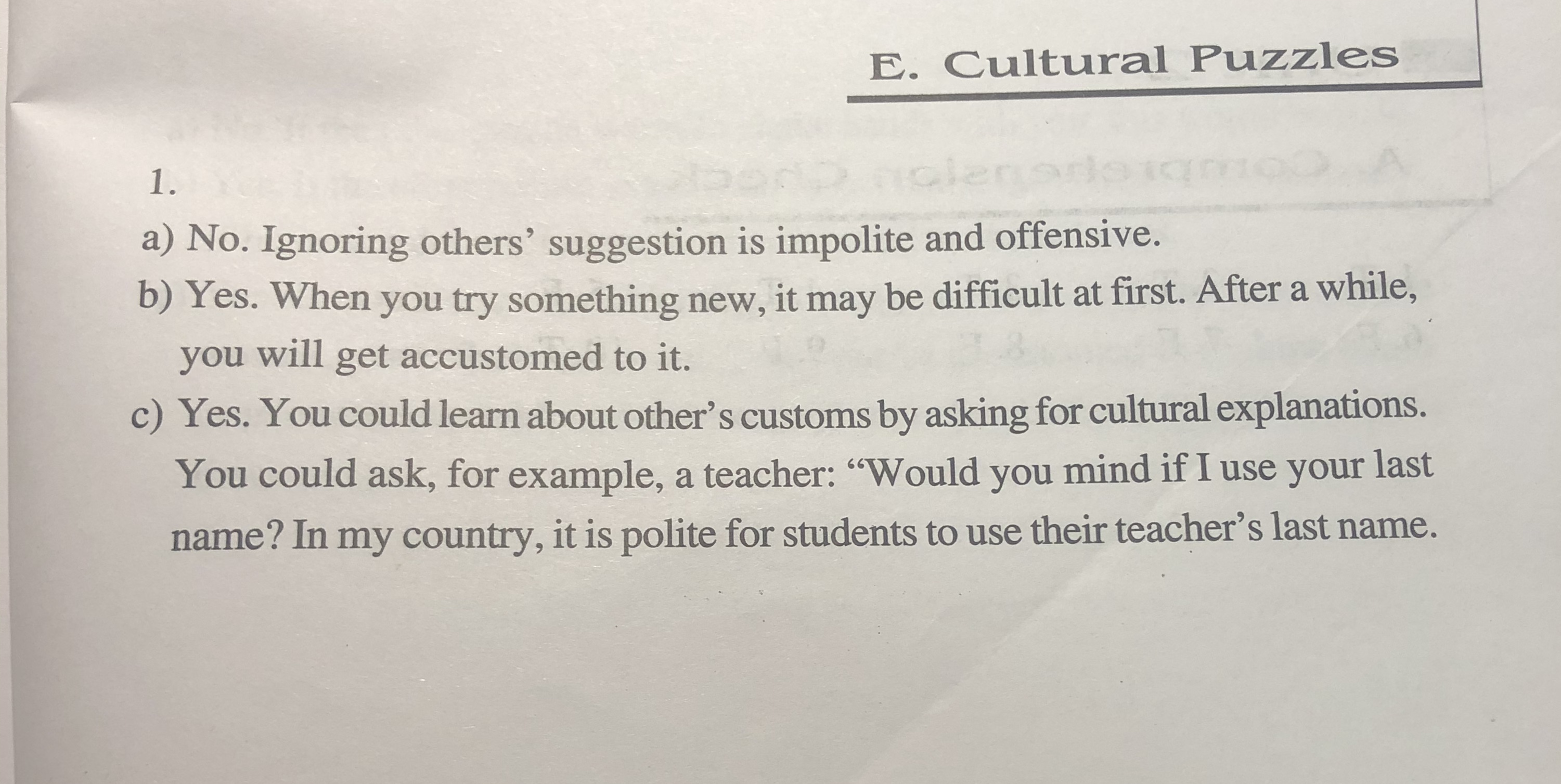 Exercise 2. Cultural Puzzles