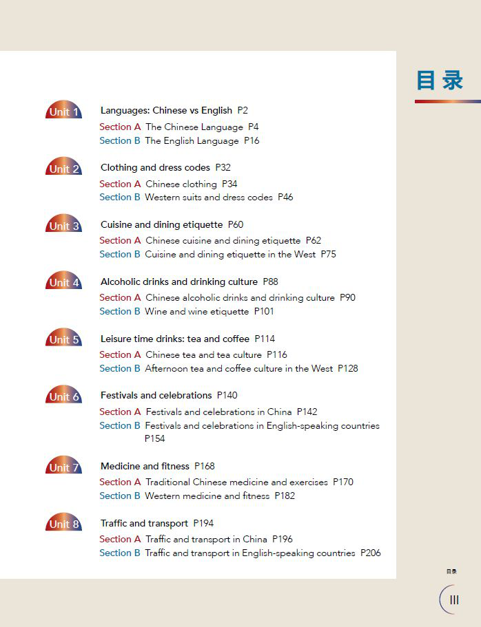 本课教材的目录(我们将从以下八个章节来了解中英文化的差异):