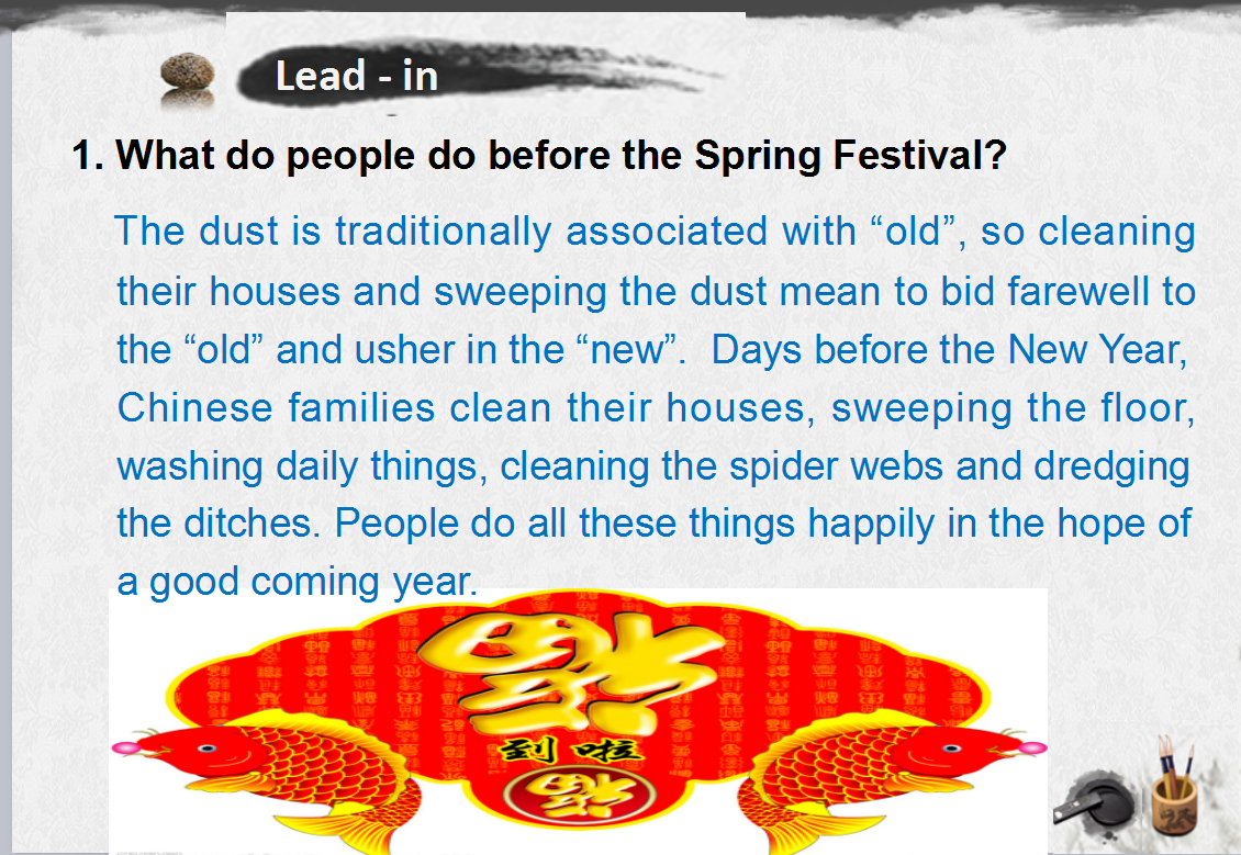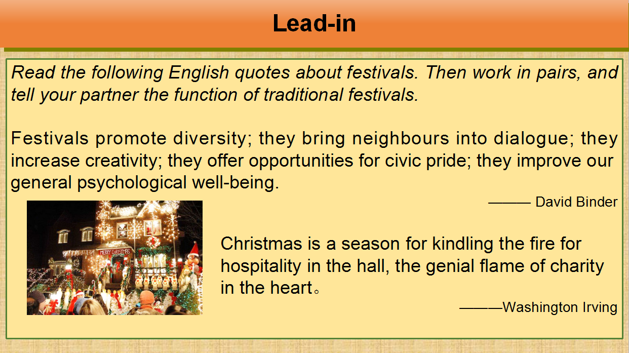 Task 1:. Watch the video about festivals in English https://video.tudou.com/v/XMjIwNTkxMDExMg==.html?__fr=oldtd (10’00’’) to learn how to describe a festival.