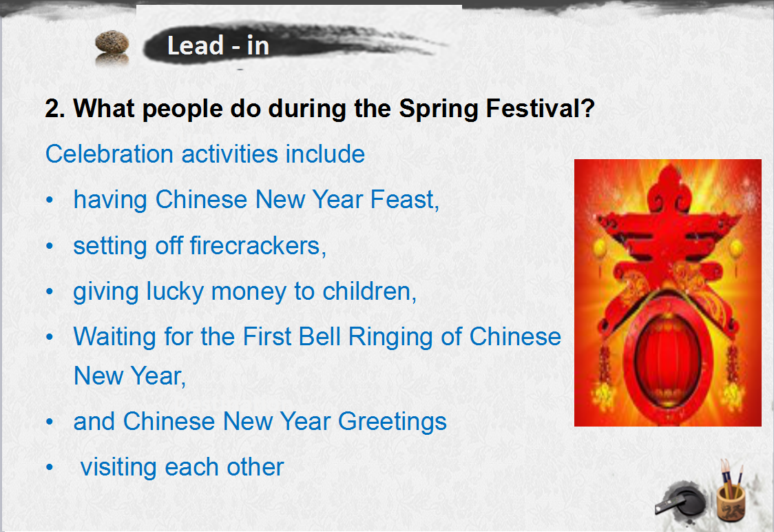 2. Know some detail information about Chinese and English festivals.
