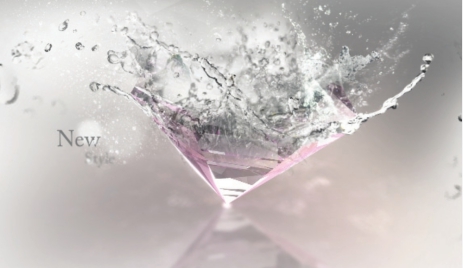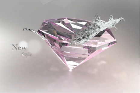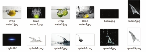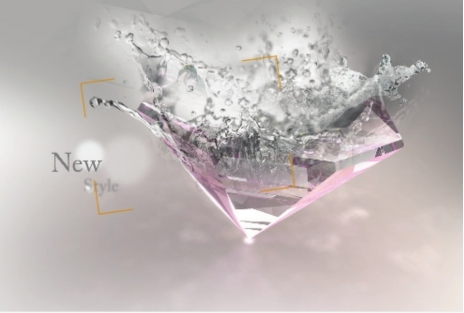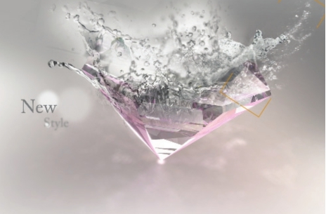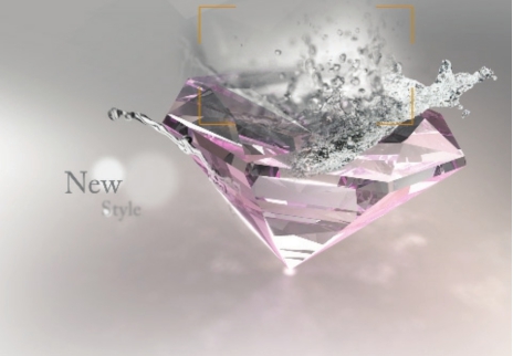 (31)在时间线窗口中导入drop water1和splash2素材,调整他们的水花部分,组合后放入到钻石附近的背景上;