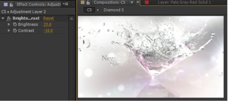 (3)添加亮度和对比度,选择菜单,为此层增加亮度。调整结束后,选择时间线上的这两册,右键选择预合成,快捷键为ctrl+shift+c,将此层命名为Diamond1;