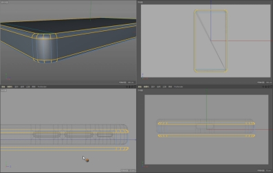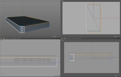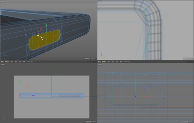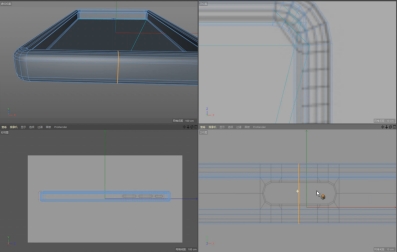 3.选择上面的面首先内部挤压,制作出手机壳边框造型部分;再ctrl向下挤压一点点,制作出手机壳卡边造型部分;再向四周放大并ctrl向下挤压一定深度,制作手机壳内部部分;最后内部挤压收尾。温馨提醒:边缘地方适当添加循环线,确保细分曲线后造型稳定;