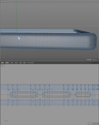 6.单击右键选择切割(KK)连接倒角院高低点,将不需要的边全部选择后消除,最后单击右键再次优化;