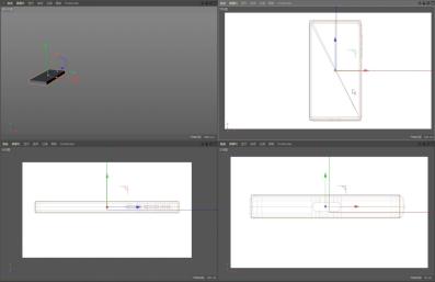1.ctrl+v选择背景导入手机机身三视图作为参考,并创建基础造型立方体,转化为可编辑多形,单击右键优化,调整与参考手机同等大小;