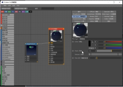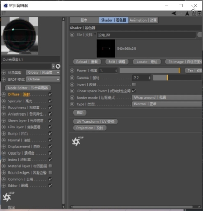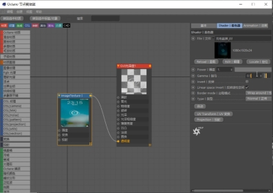 9.打开OC渲染器新建OC材质球,选择打开节点编辑器,将图像纹理链接到透明度上,图像纹理着色器中点击文件加载手机充电截屏,伽玛值为0.1。
