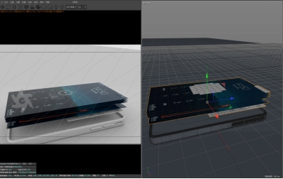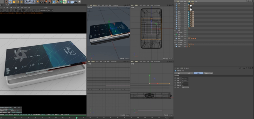 11.将与手机屏幕等大的平面复制到最上面层,复制材质球变更图片为4,调整每层图片的位置和顺序。