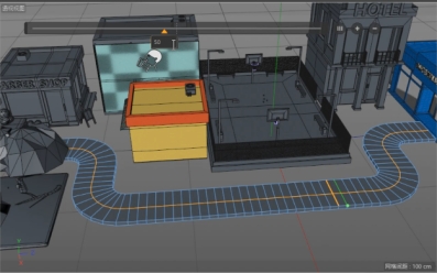2.马路模型制作,选择样条线绘制路径,选择直角的点单击右键倒角,转化为圆角过渡。创建样条线中的矩形作为图形,点击扫描制作马路,样条线设置统一;