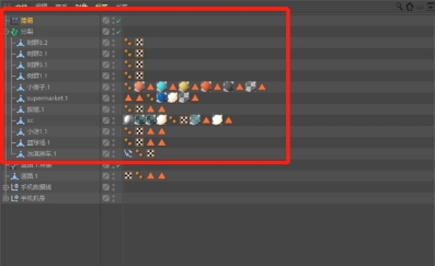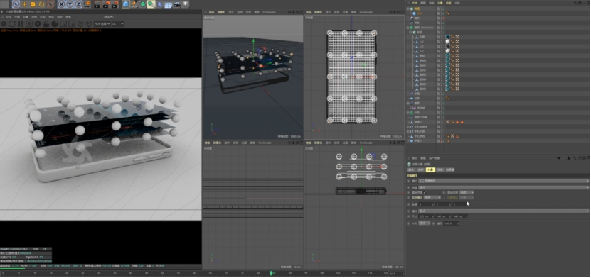 15.新建球体放入克隆下,克隆模式为网格平滑4*3*5(尺寸要与手机屏一致),在破碎随机效果器衰减中选择点对象,在克隆中新建随机效果器,效果器下随机模式改为噪波,在参数中YZ位置改为0,X设置一定尺寸该358,调整克隆的位置放在多图层最高点处。