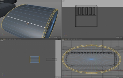 5.在圆柱体后面部分选择循环切割,在中间切割出圆的部分,继续挤压出电线部分,最后卡线修整整体造型。