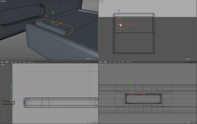 2.选择切割出来的面多次挤压形成数据电子片的凹槽,并内部凹槽四个边也分别制作倒角;