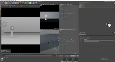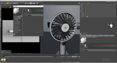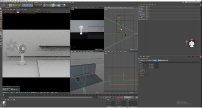 1.导入风扇模型,新建文件夹tex放置材质,渲染设置为1280*720锁定比例,ctrl+D帧率改为25,渲染设置的帧率为25,。查看中的透明为100%,渲染器改为OC渲染;