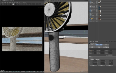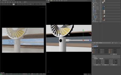 3.导入数据线,对准风扇卡槽所在位置。手机数据线制作0-40帧动画,最后一帧的位置时冻结全部,横向Y从远道近,旋转H;180到0度,调节函数曲线;